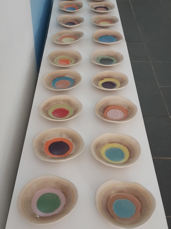 Her var mit bidrag “Ø-formede” keramiske skåle, hvor jeg arbejdede med idéen om at farver påvirker hinanden – at hver farve har en identitet i kraft af de farver, der er omkring. På samme måde som mennesker også påvirkes og er afhængige af mennesker omkring en…