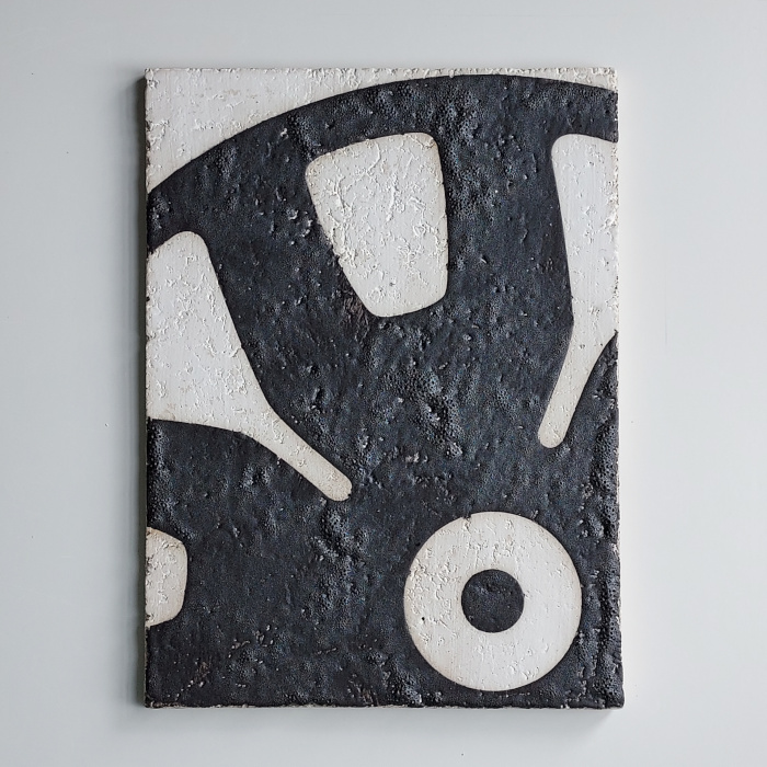 Til udstillingen skabte jeg en serie på 7 keramiske flader med grafisk glasur- og farvetryk – til ophængning.